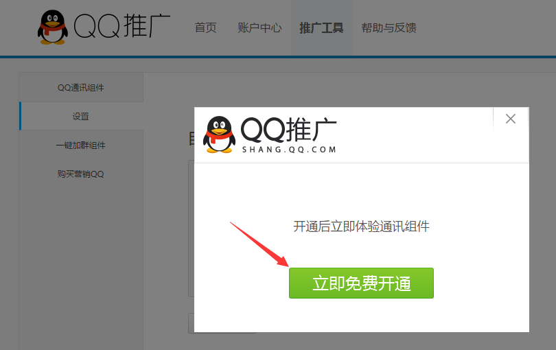2. 點(diǎn)擊“立即免費(fèi)開通”,即可開通QQ的在線狀態(tài):
