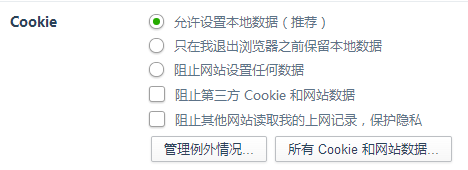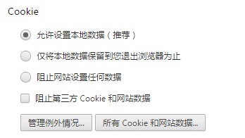 更改內(nèi)容設(shè)置,在內(nèi)容設(shè)置的Cookie選項(xiàng)中,選擇“允許設(shè)置本地數(shù)據(jù)”: