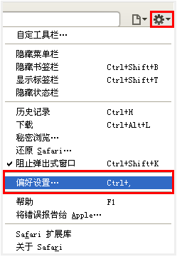 在 Safari 右側(cè) 設(shè)置菜單中的 偏好設(shè)置,打開設(shè)置窗口: