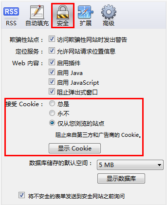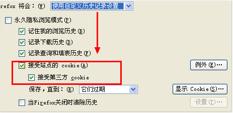勾選"接受站點(diǎn)的cookie",接受 第三方 Cookie: