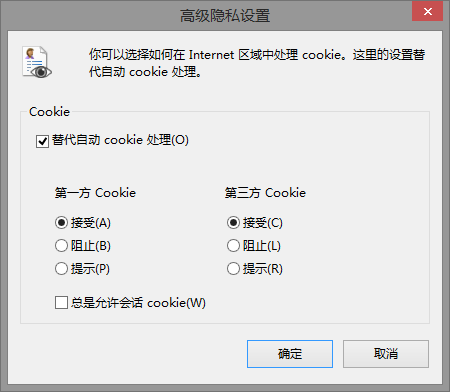 勾選"覆蓋自動 cookie 處理",接受***方 Cookie 和 第三方 Cookie: