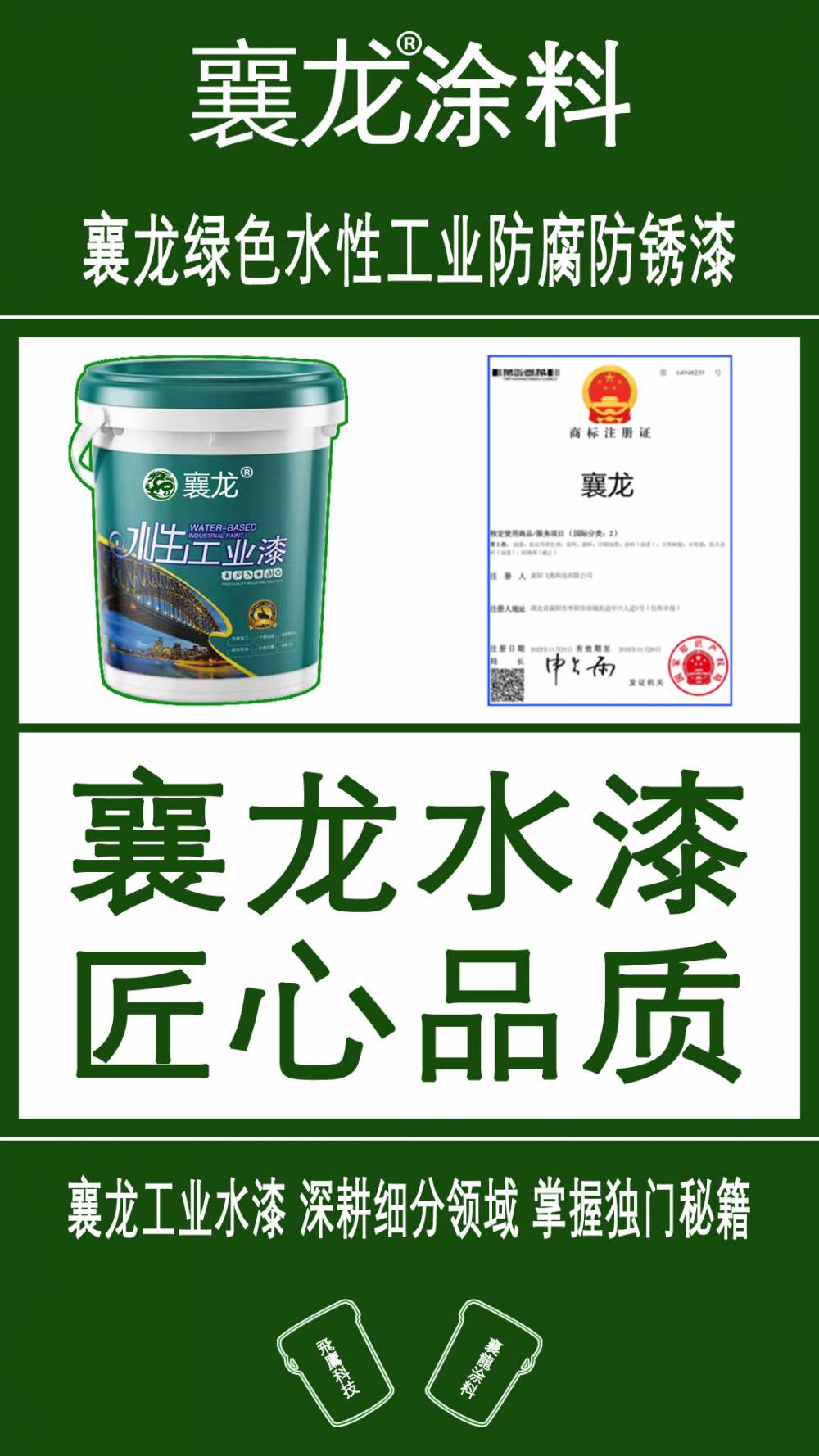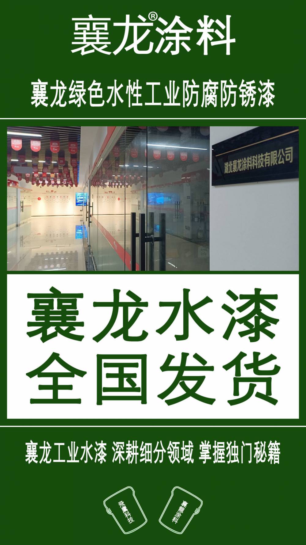 ???2?23????襄陽飛鷹科技有限公司/湖北襄龍涂料科技有限公司主要從事“襄龍”牌環(huán)保水性工業(yè)防腐防銹漆的技術(shù)研發(fā)、生產(chǎn)及銷售,如:水性鐵銹轉(zhuǎn)化劑、水性醇酸漆、水性丙烯酸漆、水性環(huán)氧漆、水性丙烯酸聚氨脂漆、水性氟碳漆、水性耐高溫漆、水性環(huán)氧脂漆、水性聚氨脂漆、水性環(huán)氧地坪漆、水性丙烯酸劃線漆等。